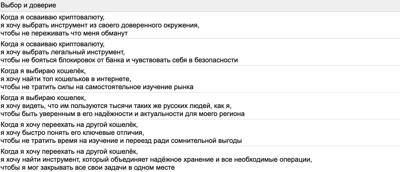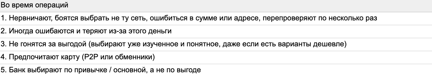 Мы пока не знаем точно, кто наш пользователь. У нас есть гипотеза, что это «бытовой новичок», то есть сегмент от новичка с минимальным опытом до бытового пользователя который время от времени пользуется криптой.