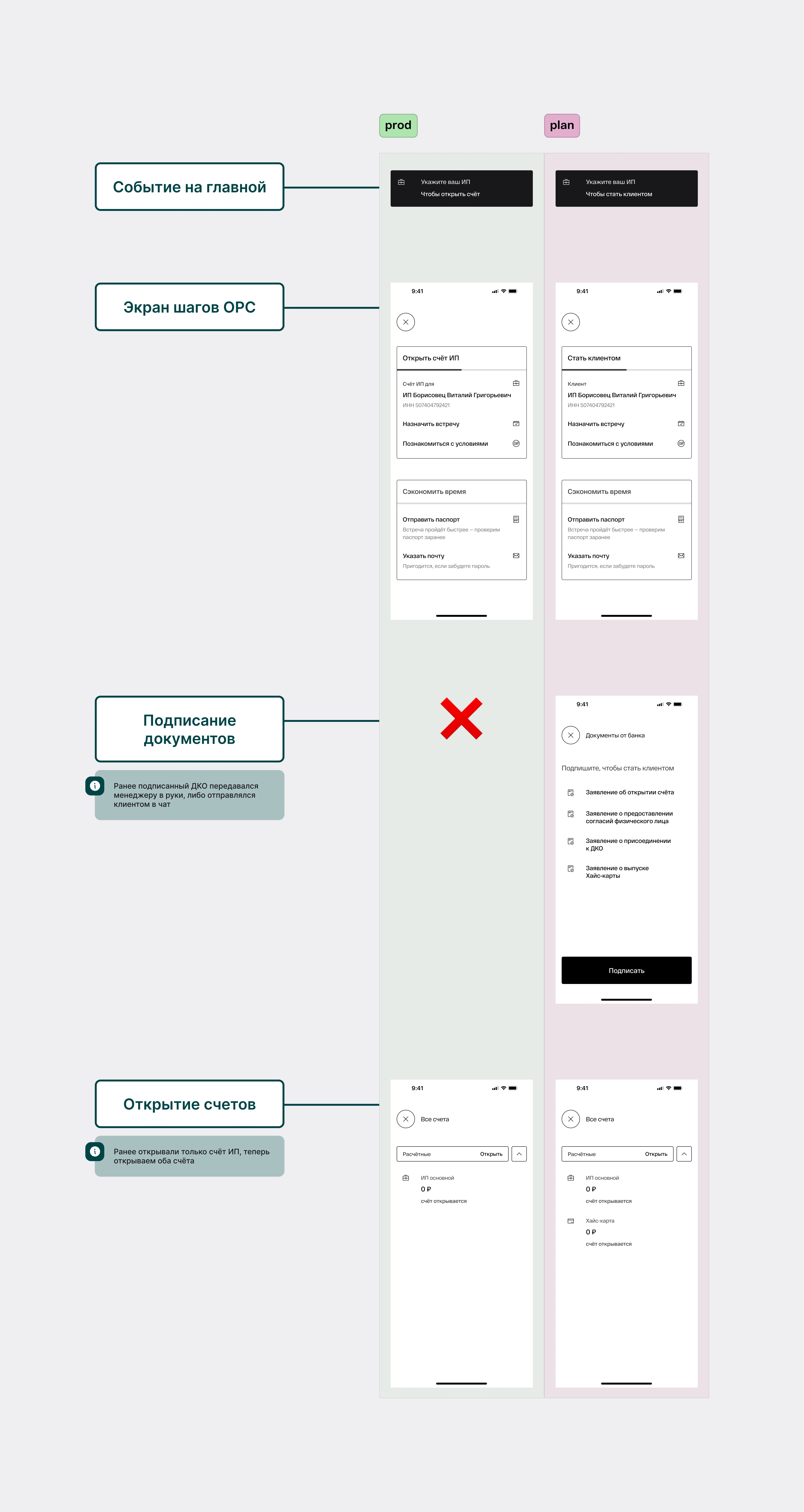 При обсуждении с командой нашли старый черновик для подписания документов по счёту ИП. Решили объединить процессы подписания и документы для обоих счетов, чтобы сократить шаги сразу в двух сценариях.