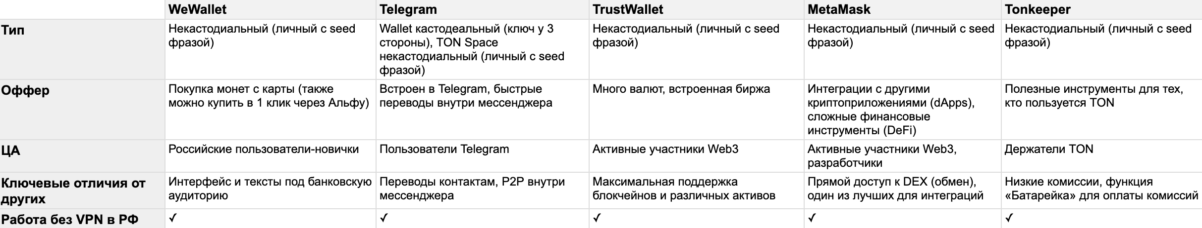 Сейчас прямых конкурентов у продукта нет. Никто в России еще не делал криптокошелёк внутри банковского приложения.