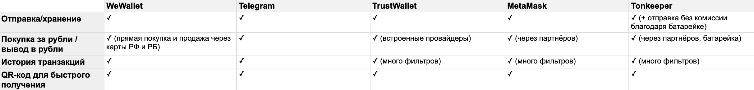 «Мы тогда делали не кошелёк, а простой обменник (купить крипту на свой кошелёк / продать крипту со своего кошелька). Был только депозитный кошелёк на время сделки. По итогу с платформой не договорились и идею забросили»